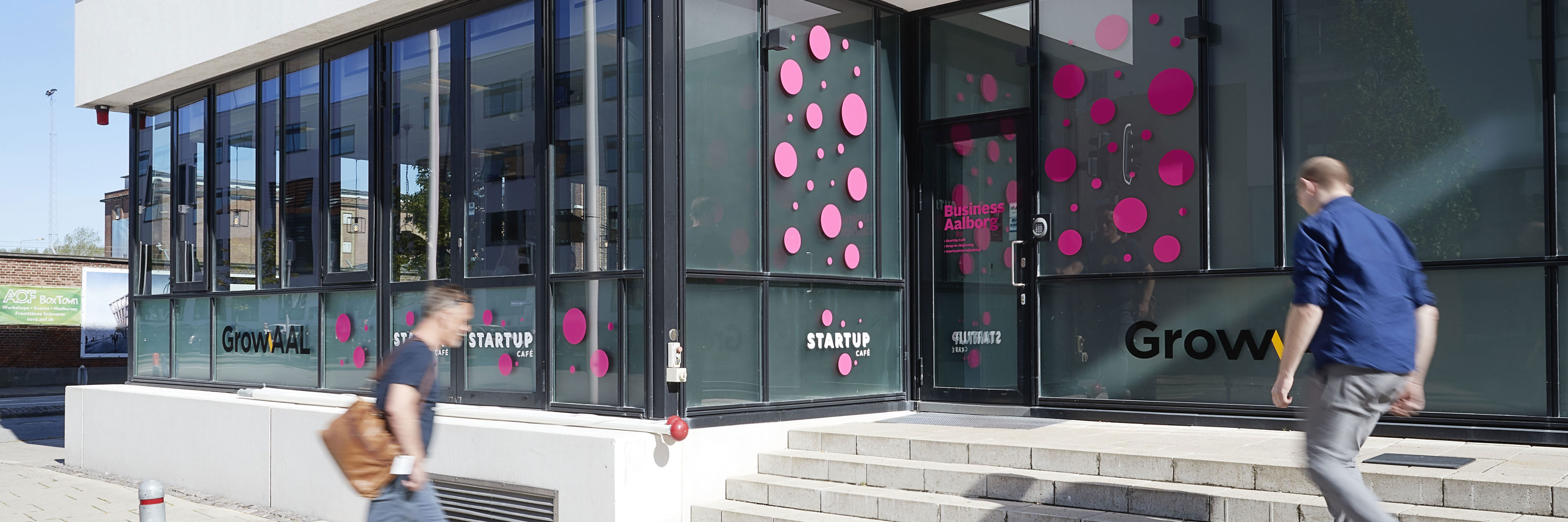 Du finder vores StartUp Café i iværksætterhuset GrowAAL, C.A. Olesens Gade 4. Caféen er et iværksættermødested for alle. Her kan du arbejde på din idé, møde andre iværksættere, få vejledning af BusinessAalborgs erfarne iværksætterkonsulenter og deltage i events.