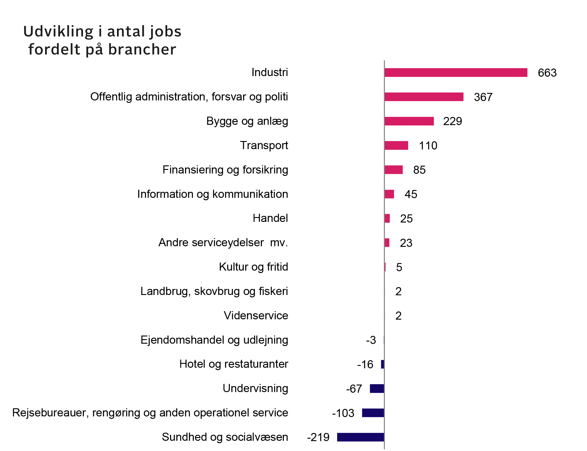 Udvikling i antal jobs fordelt på branche